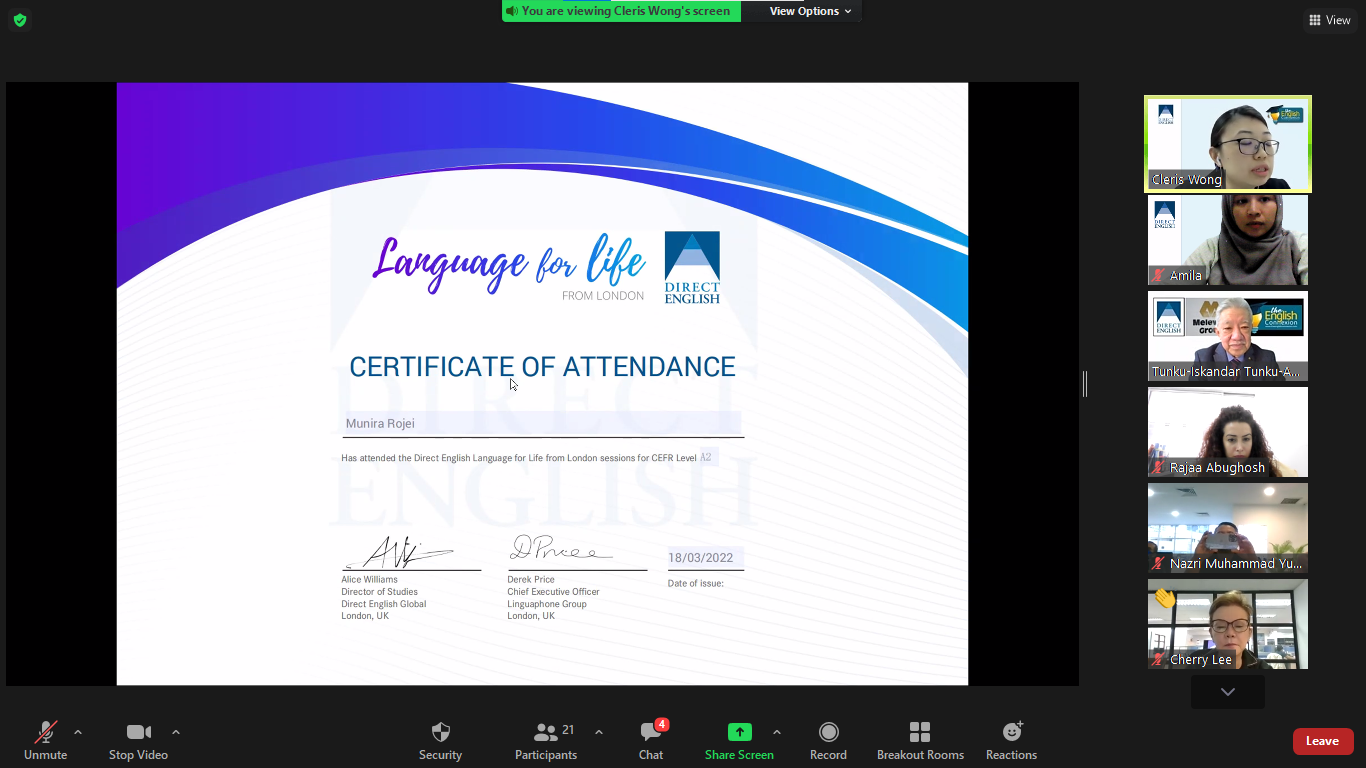 LANGUAGE FOR LIFE FROM LONDON – Certificate Presentation Ceremony
